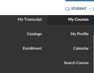 This page is also available in the Advanced View when hovering over the Student dropdown menu and selecting My Courses.
