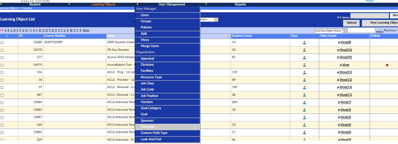 Once a delegate has been created and saved, the LMS system will associate specific users as part of the delegate. There are two methods to view members of a delegate: