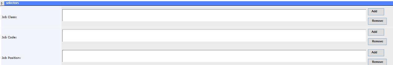Once Job Classes, Job Codes and / or Job Positions are added they will appear in the corresponding selector textbox window.