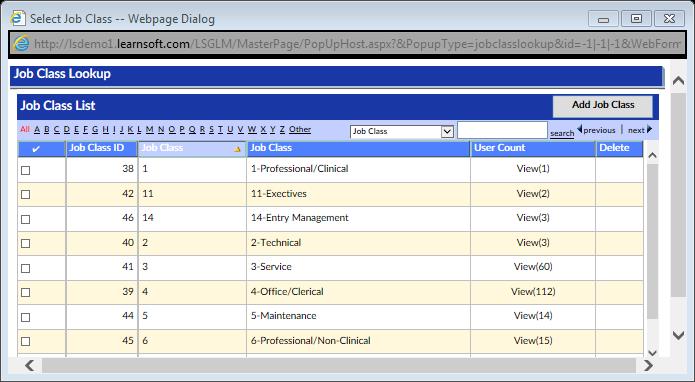 Screenshot 7 - Job Class Lookup / Job Class List Popup Window
