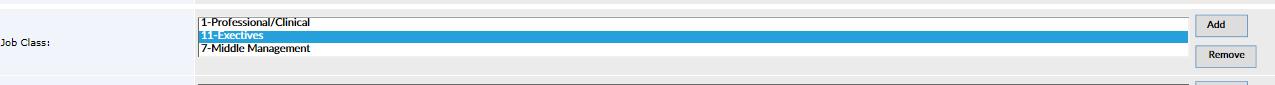 They may be removed by first highlighting the specific Job Classes, Job Codes and / or Job Positions to remove and clicking the Remove button (While items can be added in bulk, they must be removed individually).