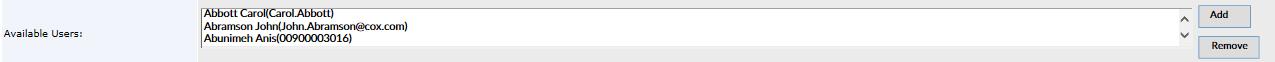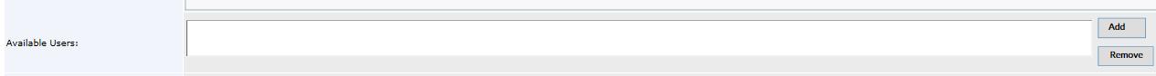Users may be removed by first highlighting the specific selected Available User to remove and clicking the Remove button (While items can be added in bulk, they must be removed individually).