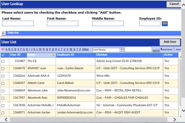 Screenshot 15 - 'User Lookup / User List Popup Screen